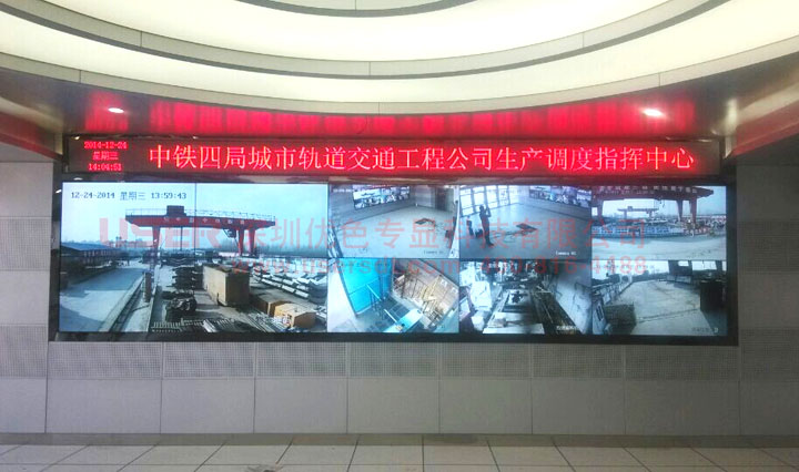 項(xiàng)目介紹:采用46寸2x5組合,物理拼縫6.7mm,鋁合金支架安裝。