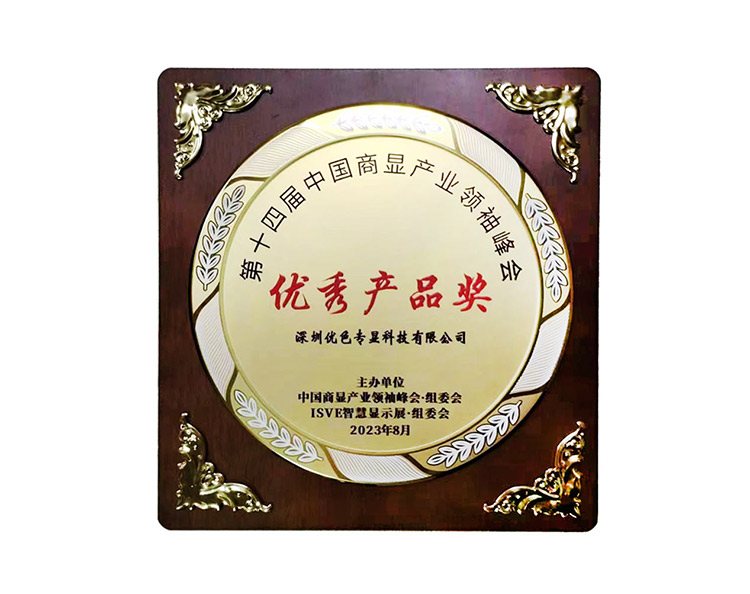 熱烈祝賀優色專顯在2023第十四屆深圳(國際)智慧顯示系統產業應用博覽會榮獲得優秀產品獎