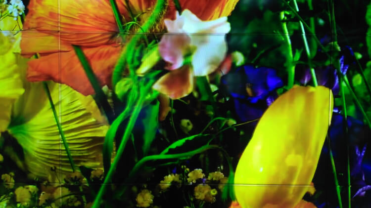 光學(xué)補(bǔ)償無縫拼接是優(yōu)色公司新推出的一款0 mm無縫拼接屏,在屏與屏的拼接處增加一條與面板顯示一樣顏色,能融合圖像的發(fā)光條,使得整體的拼接效果看似無縫。原理與光學(xué)板通過光折射不同,光學(xué)補(bǔ)償無縫拼接屏是通過發(fā)光條的融合,把常規(guī)拼接單元的物理邊框覆蓋掉,從而實(shí)現(xiàn)無縫拼接的效果。